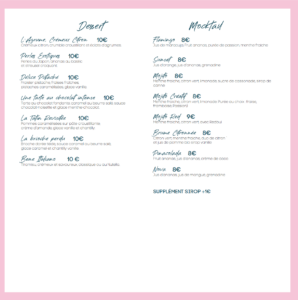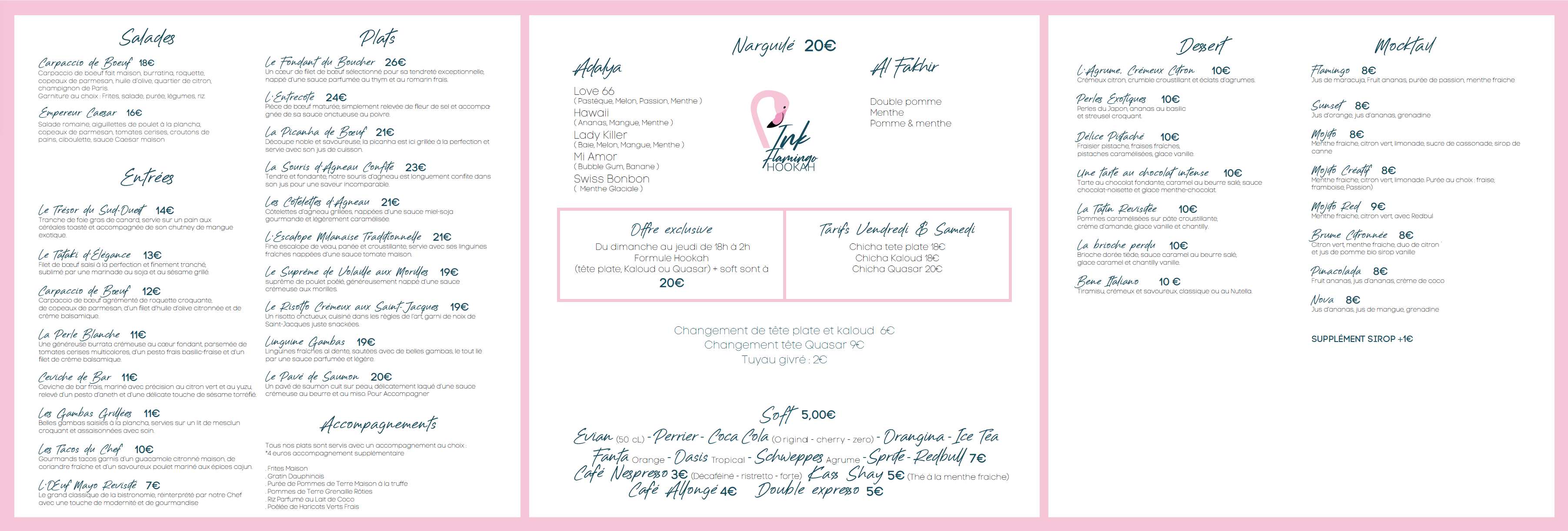 Découvrez notre carte du bar à chicha Pink Flamingo Paris