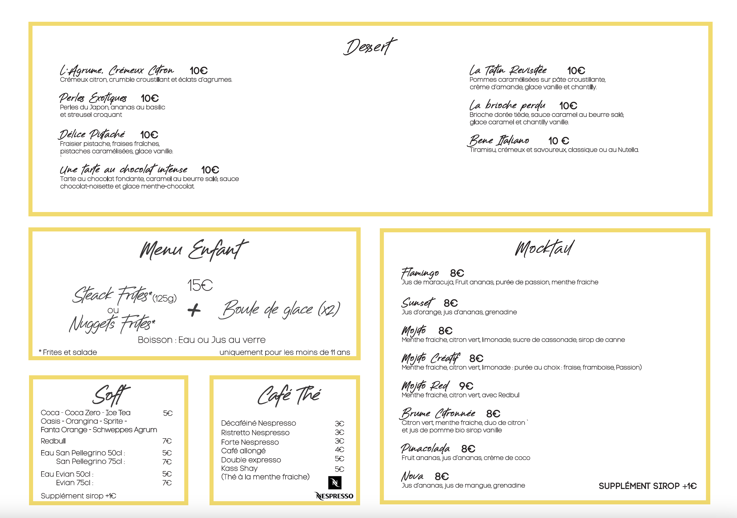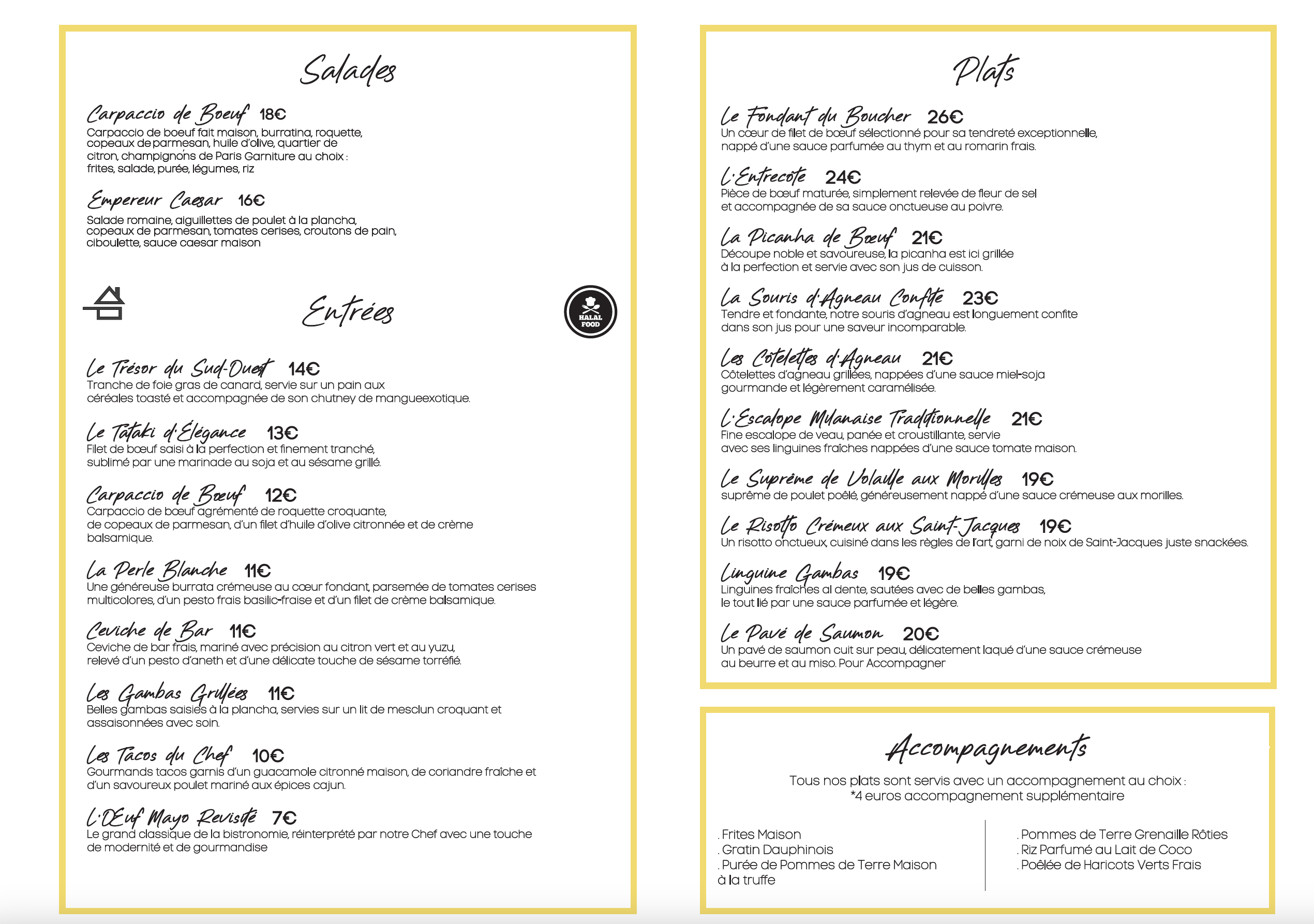 Goûtez aux incontournables recettes françaises & halal, et dégustez nos délicieux Mocktails.